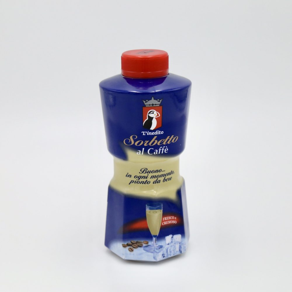 Sorbetto al caffè – 500g, confezionato in bottiglie con marchio L’inedito. Prodotto pronto all’uso dalla consistenza cremosa, sapore dolce, odore tipico del caffè.
